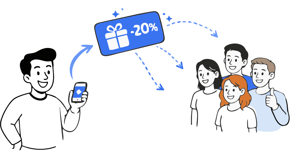 Ваш клиент просто дарит скидку или подарочную карту вашего бизнеса своему окружению